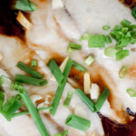 Pour soy sauce over fish. Sprinkle ginger, garlic, and green onion over the fish as well.