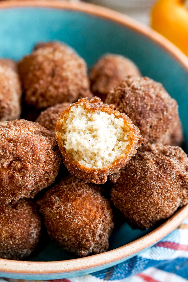 The only two pieces of equipment I recommend for this recipe (but are still not strictly necessary) are a digital thermometer and a cookie scoop. The thermometer is to check the temperature of the oil when you deep fry and the scoop is to make it easy to consistently shaped and sized donut holes. Plus you wonโt have to get your fingers close to the hot oil. But if you donโt have a cookie scoop, you can use just a regular spoon and estimate about two tablespoons in volume.