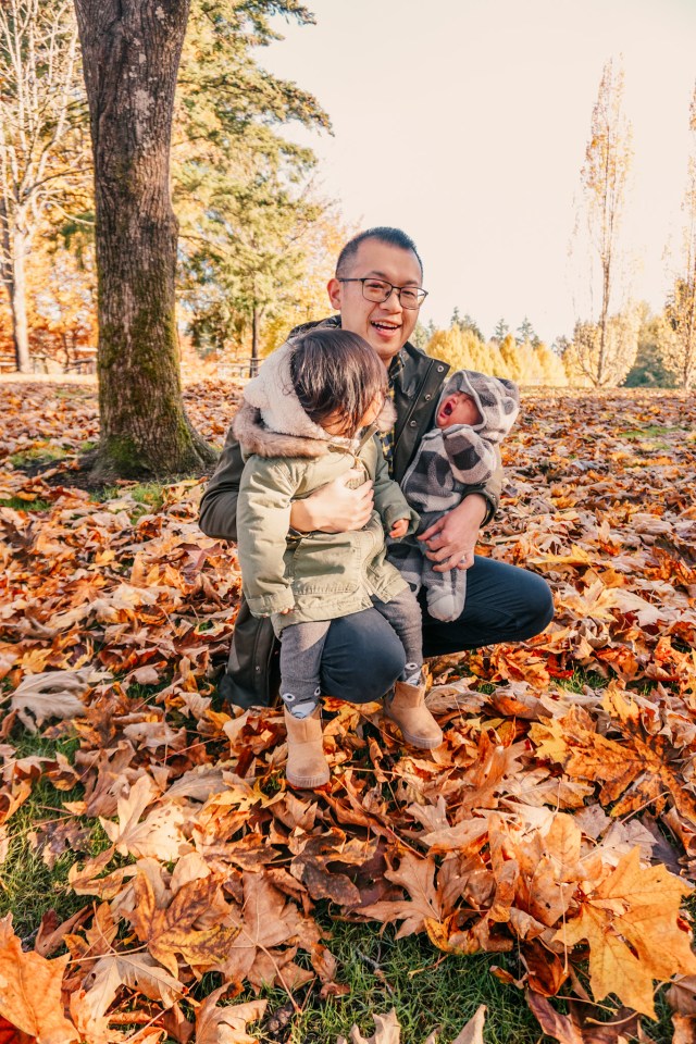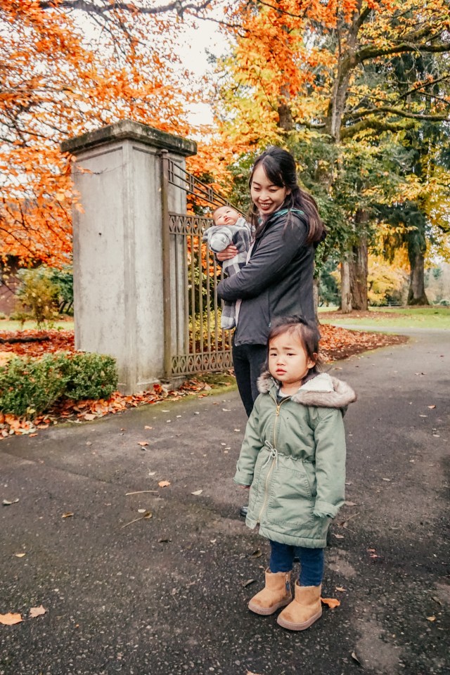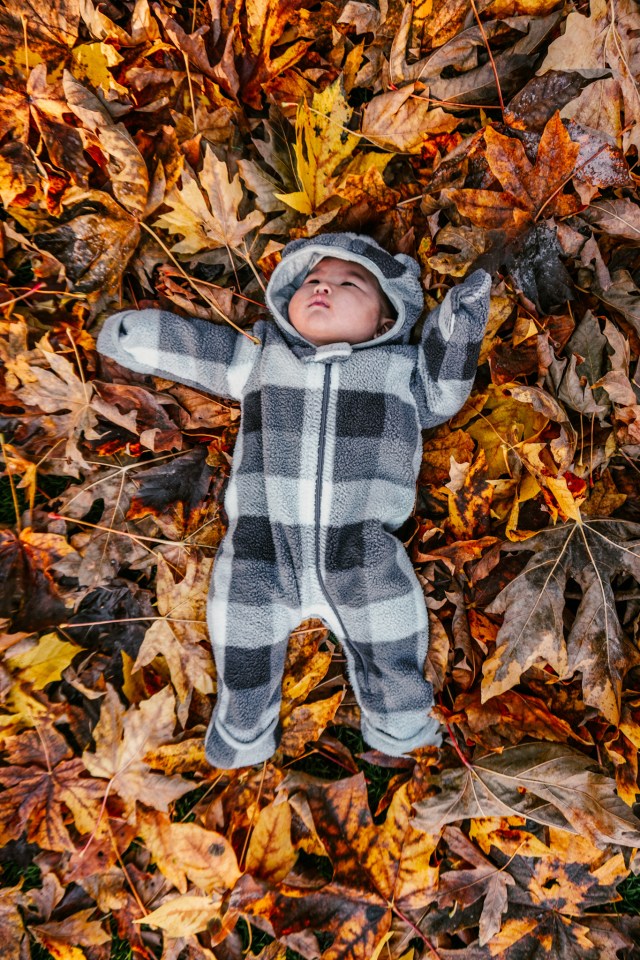 By the way, holding a baby when youโre both wrapped up in puffers is hard. Laying them down in the leaves is much easier.