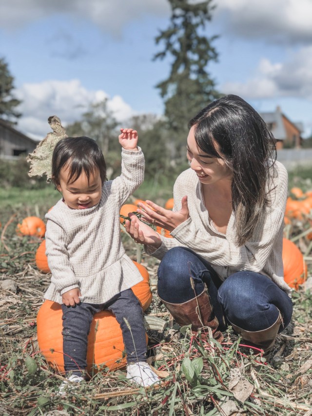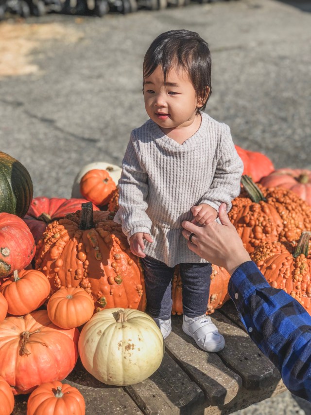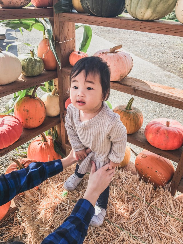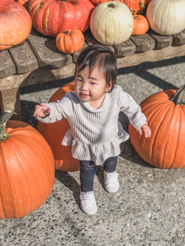 I hadn’t actually heard of Fall City Farms prior to this year. I know that Oxbow Farm and Jubilee Farm have big harvest festivals, with lots of other activities besides pumpkin patches. A lot of farms boast corn mazes, carnival rides, food trucks, live music, and more. Jemma is not really old enough to enjoy those activities, which I’m glad for. I don’t really like crowds. Or noise. Or paying for rides. (Once you’re a Disneyland annual passholder, nothing else is worth it.)