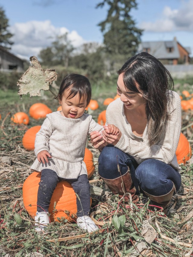 As much as I spent pretty much all of September complaining about the end of summer, I was dang quick to google “Pumpkin Patches Near Seattle” as soon as the temperature dropped. Last year, Jeremy and I kept waiting for a sunny day to go to a pumpkin patch. Cue the laugh track. We live in Seattle. It didn’t happen. So this year when the sun expectedly poked out Saturday morning, we beelined for Fall City Farms!