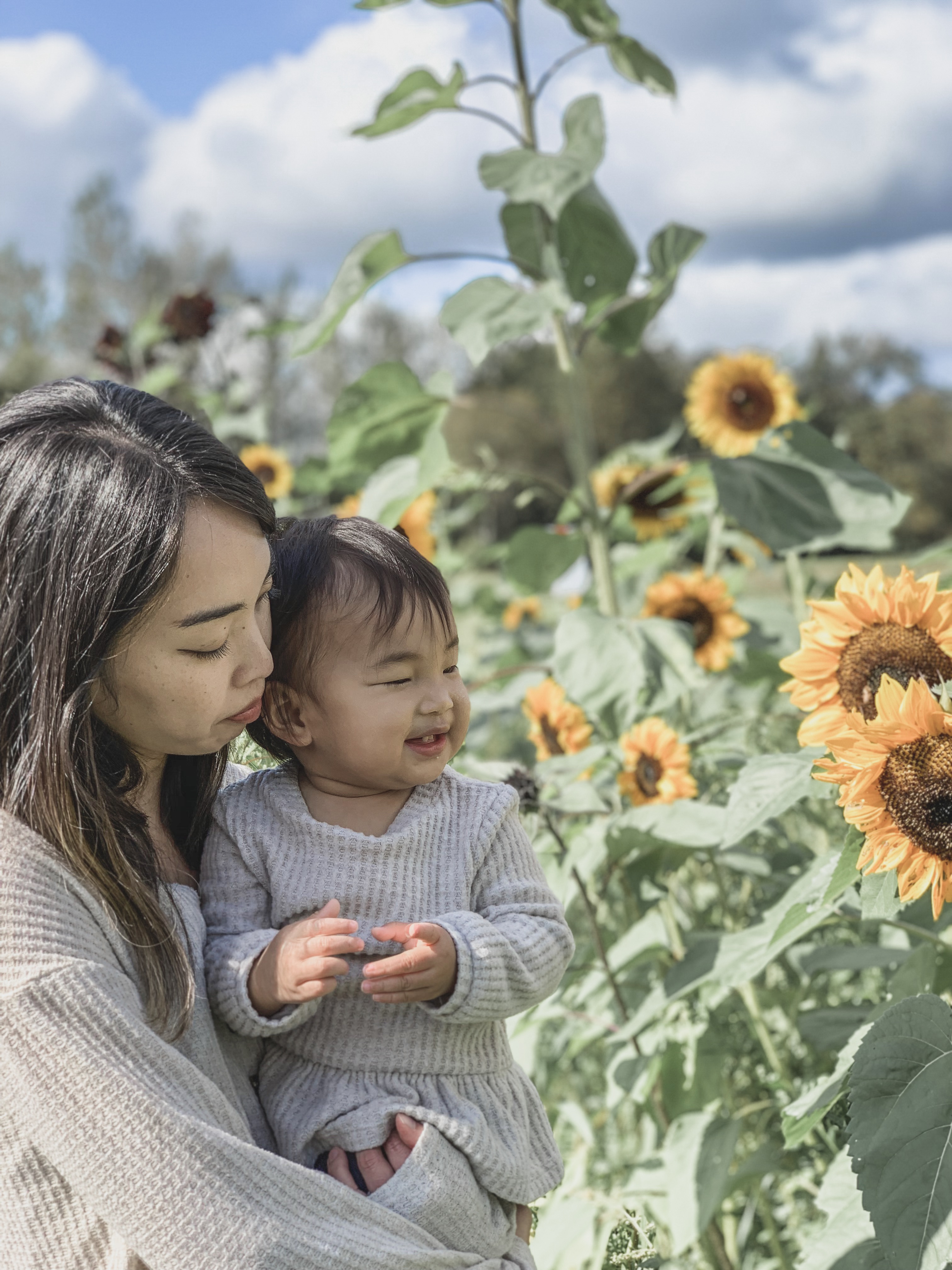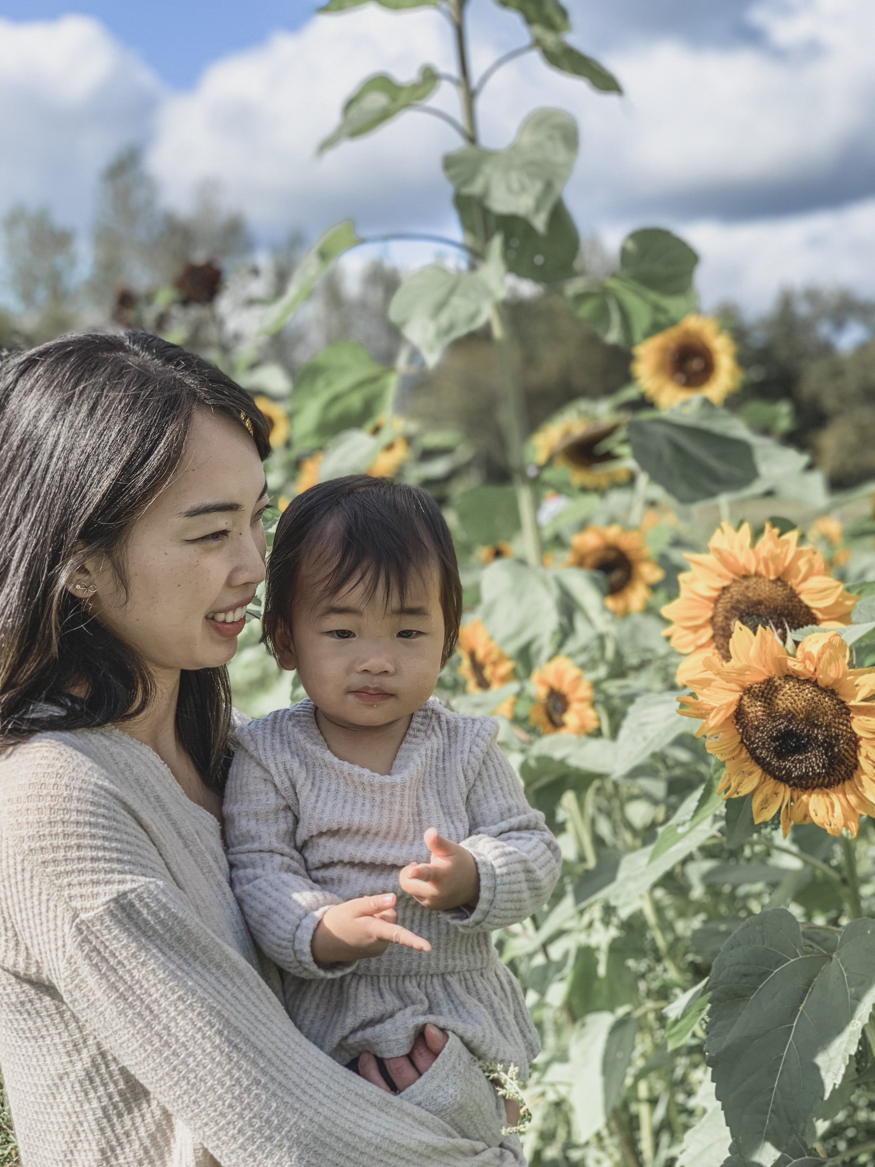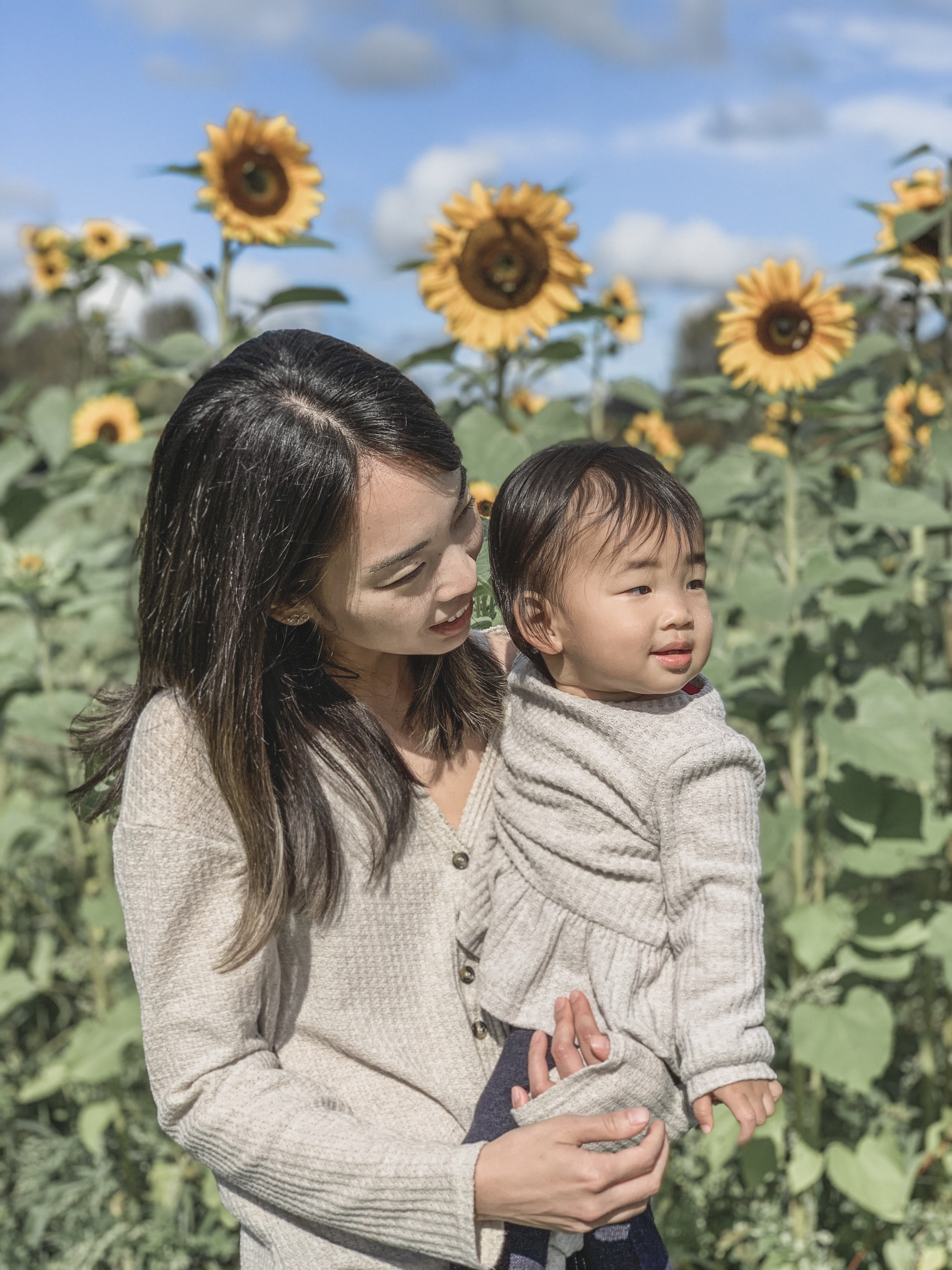 After thoroughly testing the sit-ability of the pumpkins, we headed back out to grab some cider and donuts. On the way back to our car we stopped by a row of sunflowers for some last photos.