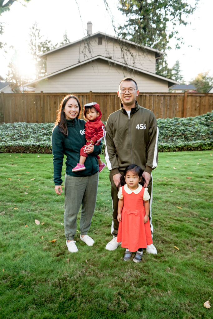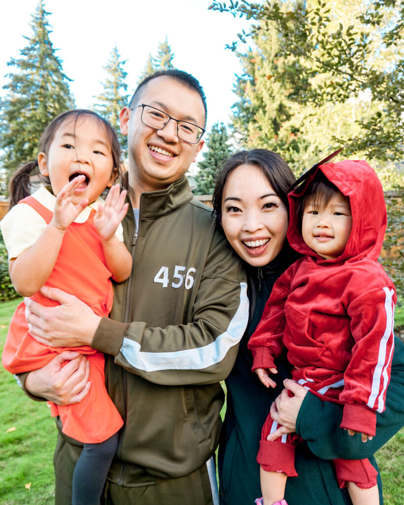 However, it turns out a bunch of other parents are thinking about Squid Game family costumes, because I got asked a TON of questions about how we DIYed these Squid Game costumes. To make things a little easier, I decided to link everything we bought in a blog post. Just FYI, these will include affiliate links, so I may make a small commission if you use them.