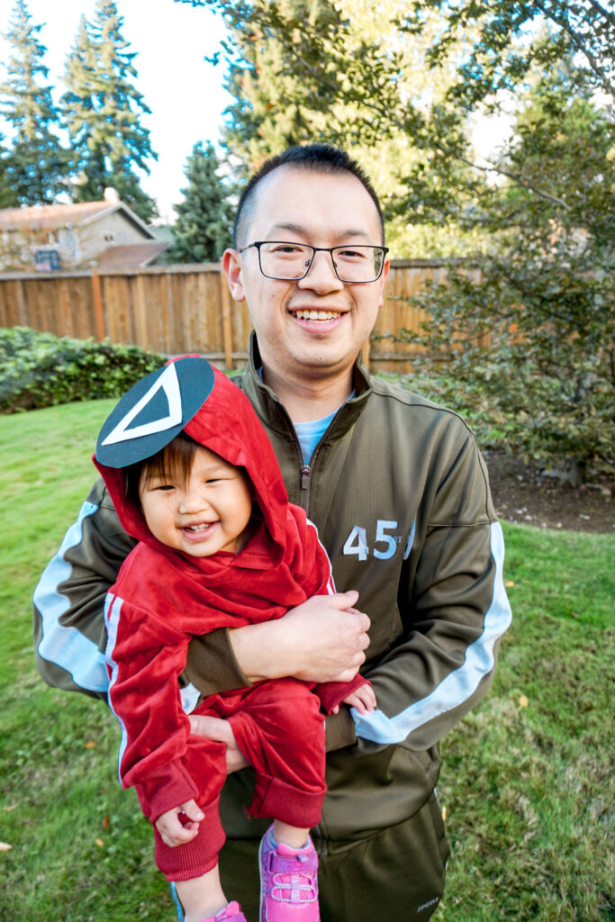 Full disclosure: Netflix contacted me a couple weeks ago and paid me to create these Squid Game family costumes and send them some photos. (Did you see us on the Netflix Family instagram or the Netflix twitter?) They did not, however, ask me to post them to social media or write this blog post. My 3 year old already has a separate Halloween costume all planned out, so these Squid Game costumes are really just extra fun for us parents.