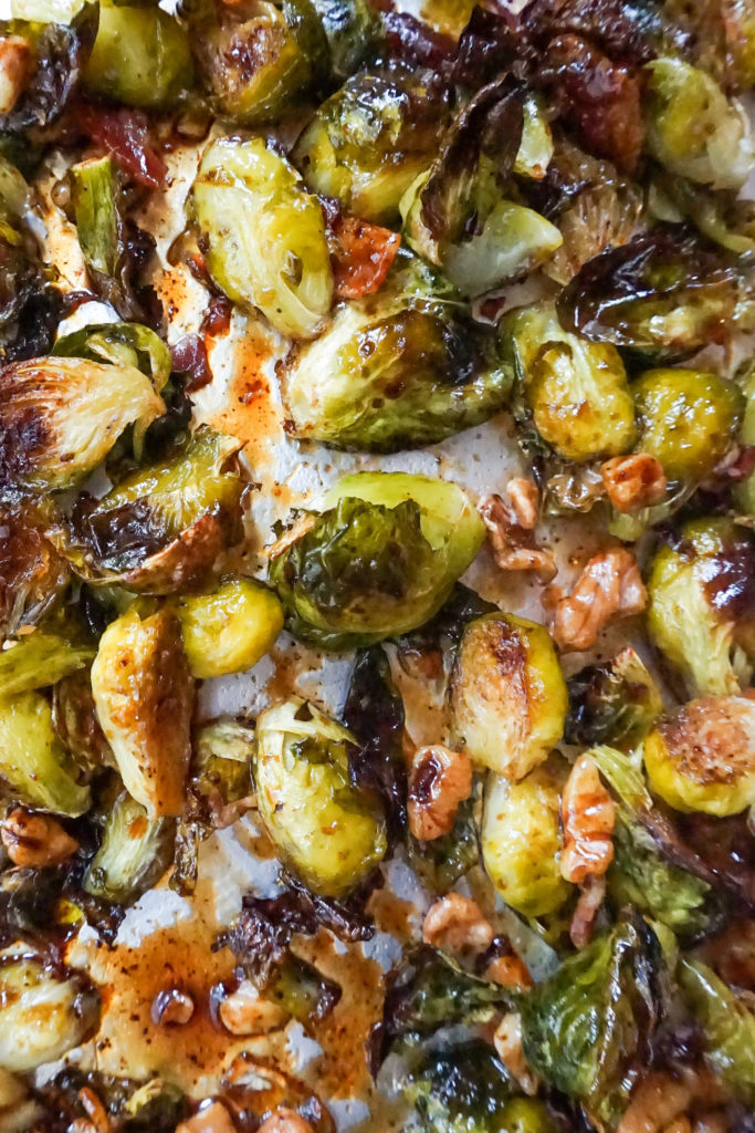 These balsamic glazed brussels sprouts are really good. The only reason why I docked a star from perfection is because I felt it didnโt REALLY need all the add-ons: walnuts, blue cheese, etc. Bacon was a good mix-in, though!