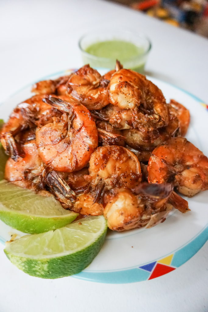 3. Grilled Garlic-Soy Shrimp with Pepperโs Hot Green Pepper Sauce