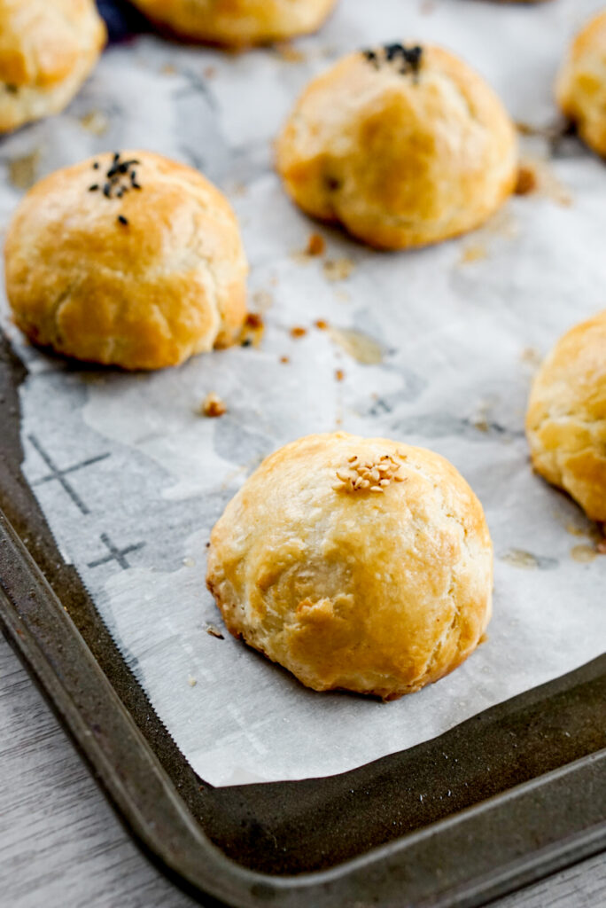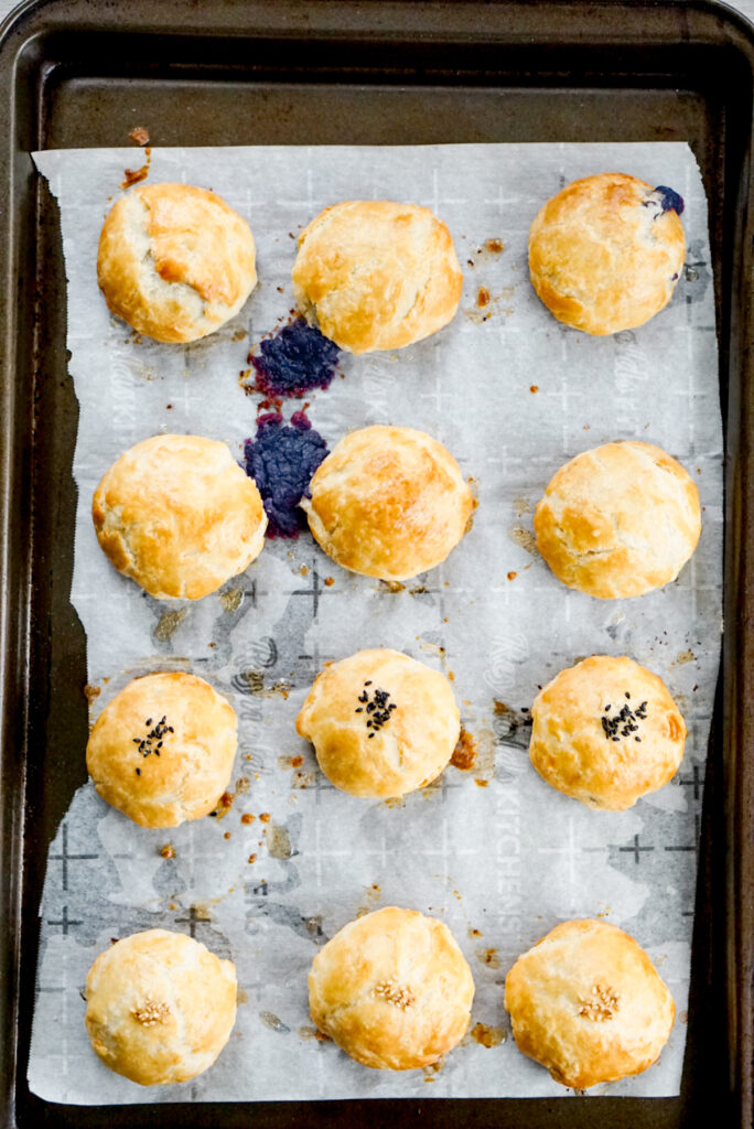 So really if you use store bought pie dough and store bought filling… this recipe is as easy as assembling your manju and baking.