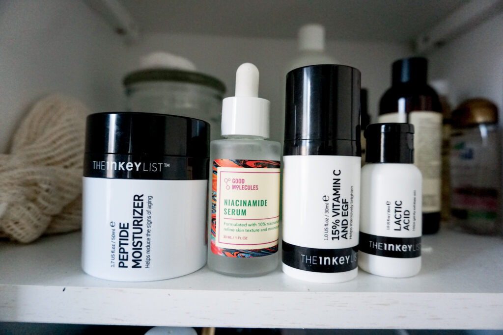 My Asian skin is genetically prone to getting sun spots. I know that thereโs no miracle product for making them go away, but I feel like brightening products can go a long way in prevention. I use a Vitamin C serum in the morning and a niacinamide serum at night. For Vitamin C, Iโm currently using Inkey List, but Iโve also liked Kiehlโs and Sunday Riley. For niacinamide, I am using Good Molecules (not sold at Sephora), but Iโve also liked The Ordinary or Inkey List.