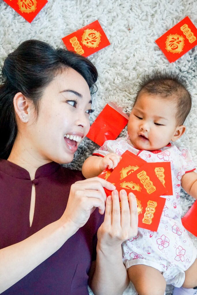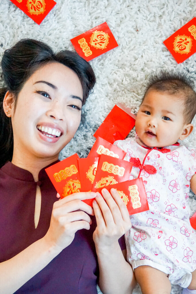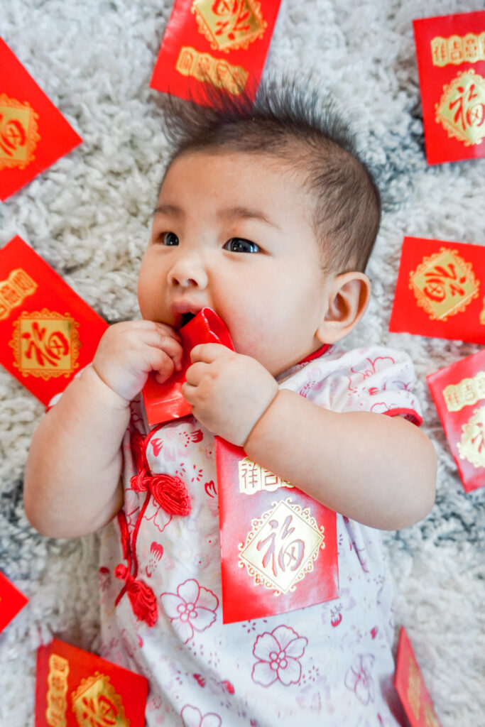 But one easy way to get fun photos for Lunar New Year is to bust out those red envelopes anyway and scatter them all around.