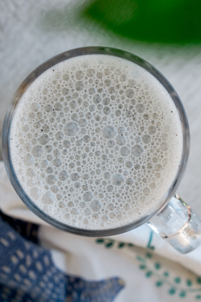 For this recipe, I give you instructions just on how to make the black sesame milk. You can drink it hot or over ice, with or without sweetener (I do without). I usually drink my black sesame lattes hot for a cozy, noncaffeinated drink in the winter months. If youโd like to add coffee, simply add a shot or two of espresso and use the black sesame milk the same way you would any milk or creamer. Iced black sesame milk with a shot of espresso poured over is both delicious AND fun to look at.