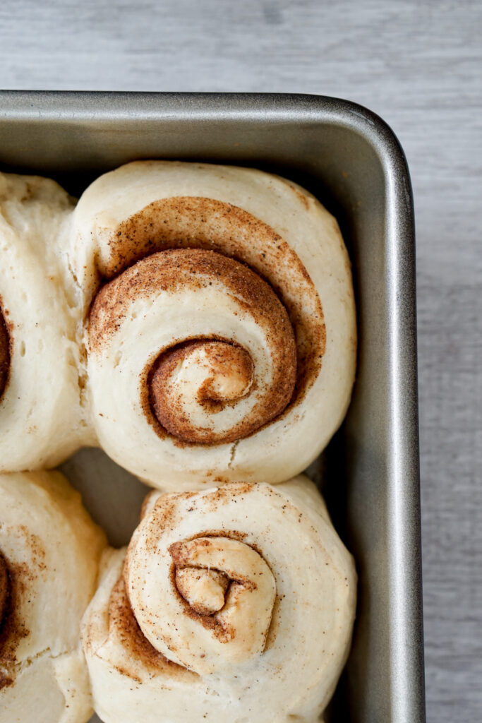 Cinnamon rolls! I know that I typically get creative with my desserts. Sometimes I do fun Asian twists like substituting yuzu in a key lime pie. Other times I make Asian desserts like mochi, but throw in some funfetti. But to be honest, a lot of times the desserts I make at home over and over again are the simple ones from my childhood. I remember my Chinese grandma letting me help her make cinnamon rolls on countless afternoons after school. Her cinnamon roll recipe is easy and basic, exactly what I want when Iโm feeling nostalgic. And if youโre new to baking, this is a great recipe for a beginner.
