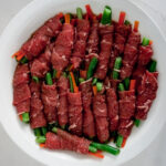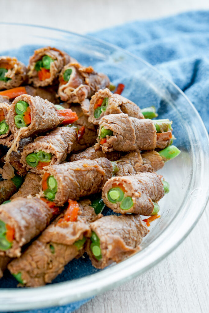 One thing to note: I always blanch or steam my vegetables before rolling them up, as pan frying the beef is so fast, it doesnโt cook root vegetables all the way. I used to dump my veggies in boiling water for 30 seconds to blanch them. But now, I just toss them in the microwave with 1-2 tbsp of water and steam them. You do you.