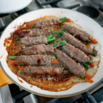 However, when Iโm cooking large batches for New Yearโs, I found itโs tough to have to clean my pan in between batches, so I switched to marinating the beef rolls in the fridge overnight and then pan frying. The sauce doesnโt stick to the pan as much and itโs much easier to cook batches. I DO however really love the original way of cooking the sauces in the pan, which I think is a style popular in Kansai grilled meats. So you can choose!
