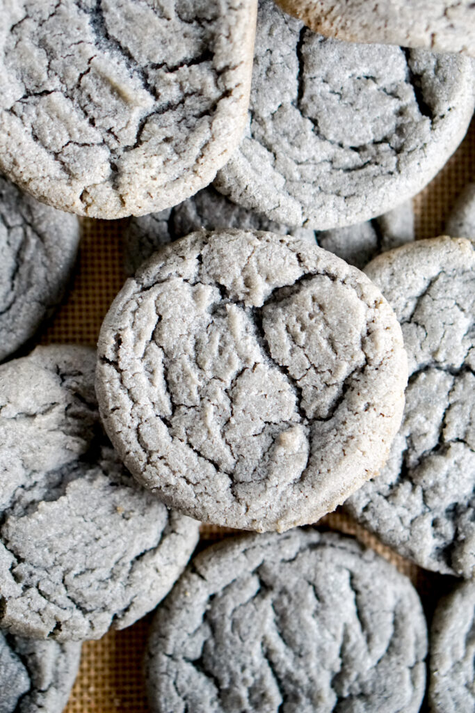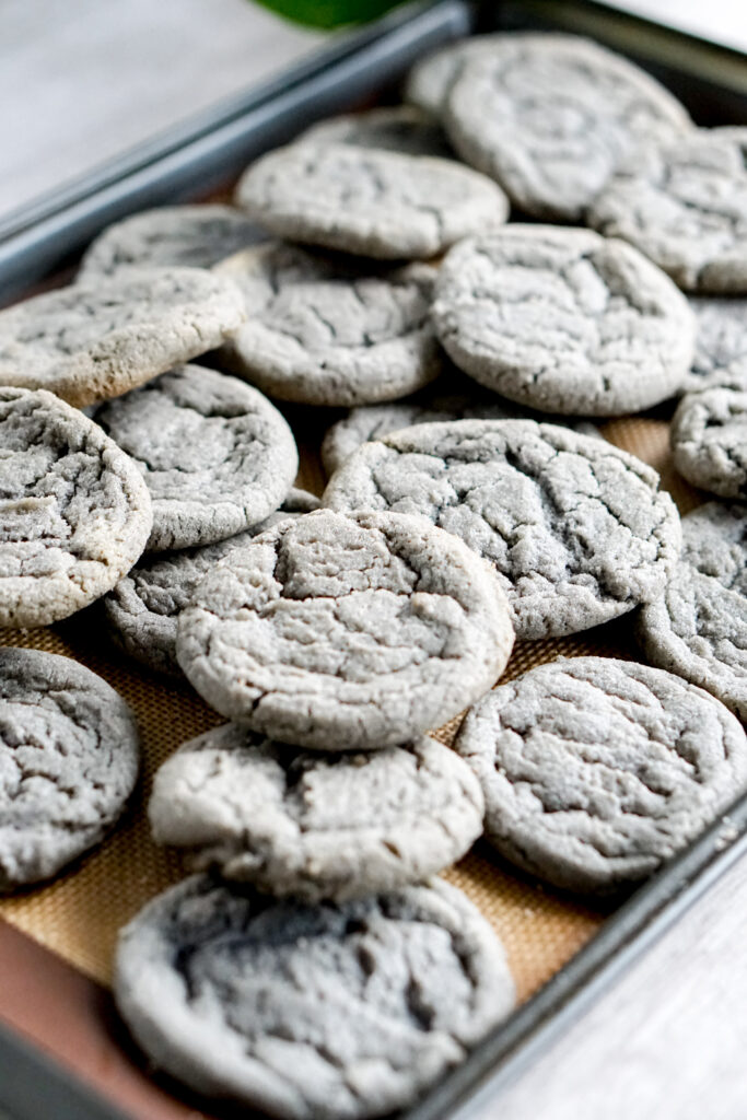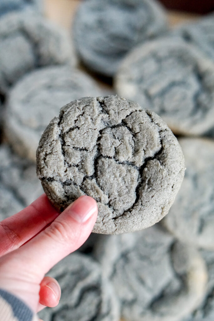 These black sesame cookies are a super easy twist on classic sugar cookies. This recipe uses black sesame paste so you donโt need to grind your own seeds. Nutty and naturally gray colored, these cookies look just like the moon!