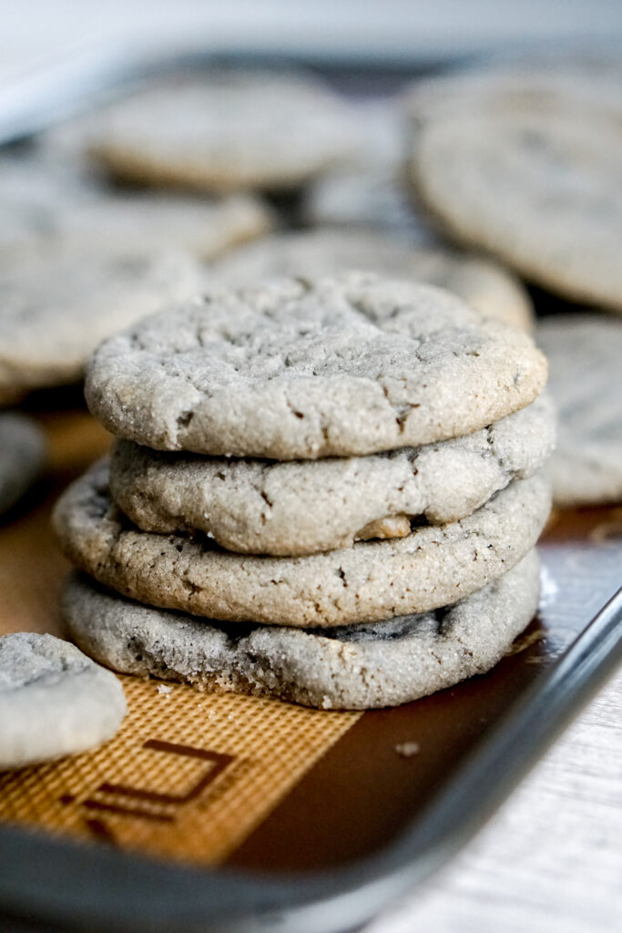 Hello. Yes, I know, Iโm back with yet ANOTHER black sesame cookie recipe. But I have good reason! You see, last Christmas, I made black sesame matcha neapolitan cookies. And lo and behold, my four-year-old LOVED just the black sesame part. So naturally, instead of eating the slobbery remnants of my childrenโs food like I normally do, I decided to make it easier on myself and just make an entire black sesame sugar cookie.