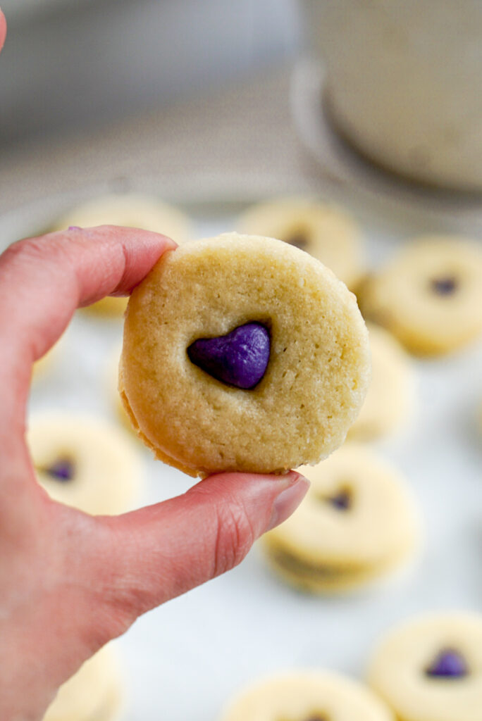 You also only need a small amount of the jam for these cookies, so you can use the rest for toast or some of my other recipes, like purple sweet potato pop tarts!