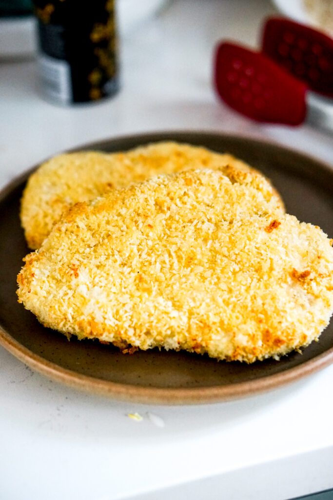 I like to buy thin sliced chicken breast at the market because itโs convenient. However, I guess more โtraditionally,โ you would buy regular chicken breast, butterfly slice them thin yourself, and tenderize them. But if youโre going to do things the hard way, why are you here reading an air fryer recipe? Right?