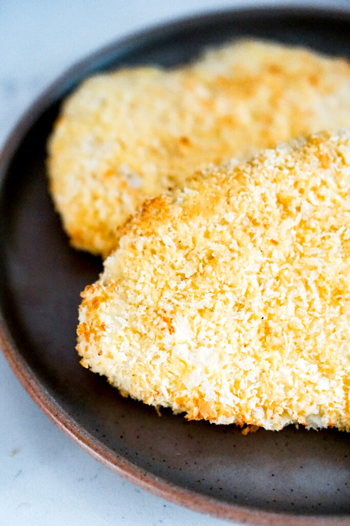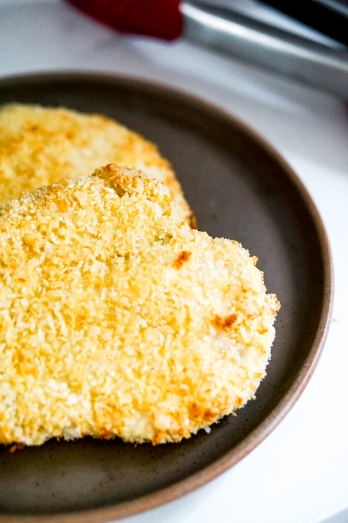 But Iโm guessing youโre here for the convenience of air frying. So hereโs the only little tip you need to know: before you air fry your katsu, you might want to toast your panko. Without deep frying, your panko wonโt turn brown. If the color bothers you, you can toast your panko beforehand. Put the panko in a skillet on the stovetop over medium heat until it turns golden brown. The pictures in this blog post reflect what the panko looks like if you DONโT toast it. It doesnโt change the taste at all; only the color, so this step is completely optional.