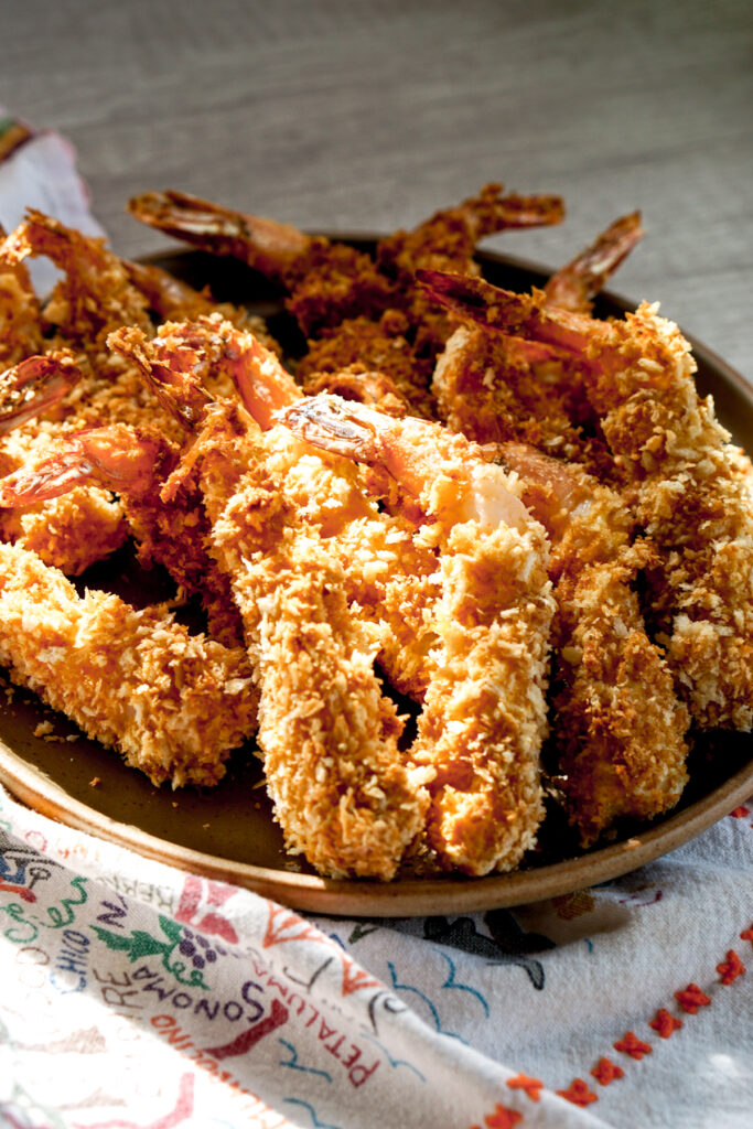 As the title describes, ebi fry is shrimp thatโs been breaded in Japanese panko bread crumbs and then typically deep fried. Itโs a common dish in casual dining and popular with kids. In America, Iโve often seen ebi fry in kids menus at Japanese restaurants. I typically make ebi fry on Japanese holidays like Childrenโs Day and on New Years. Iโd love to make it more often, because my 3 year old can devour practically half a pound of shrimp by herself, but I hate dealing with deep frying. GOOD THING I HAVE AN AIR FRYER NOW! LIFE CHANGING!