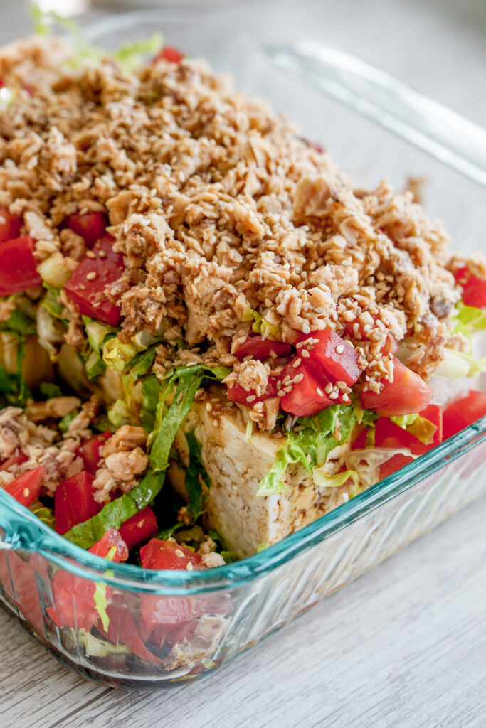 You can even eat this salad with JUST tofu and dressing. Itโs really that flexible.