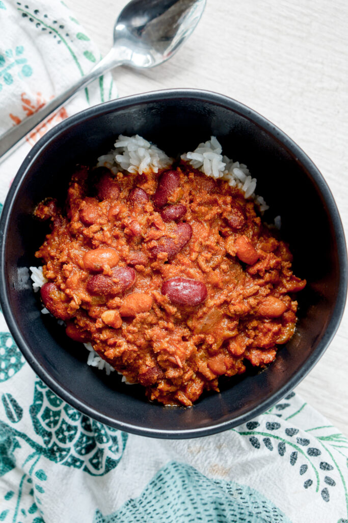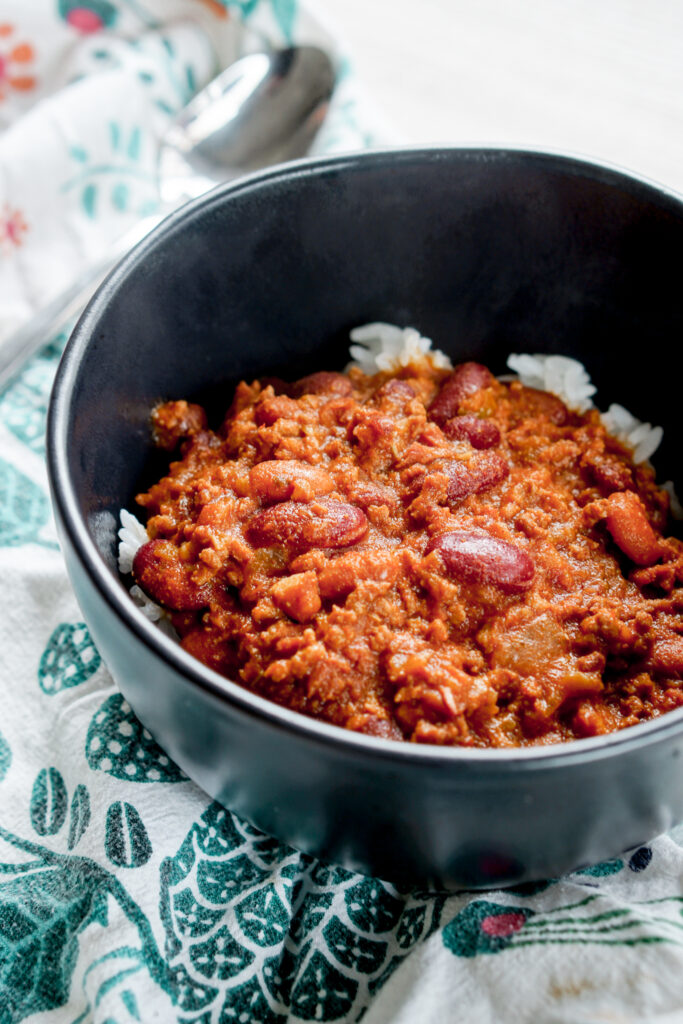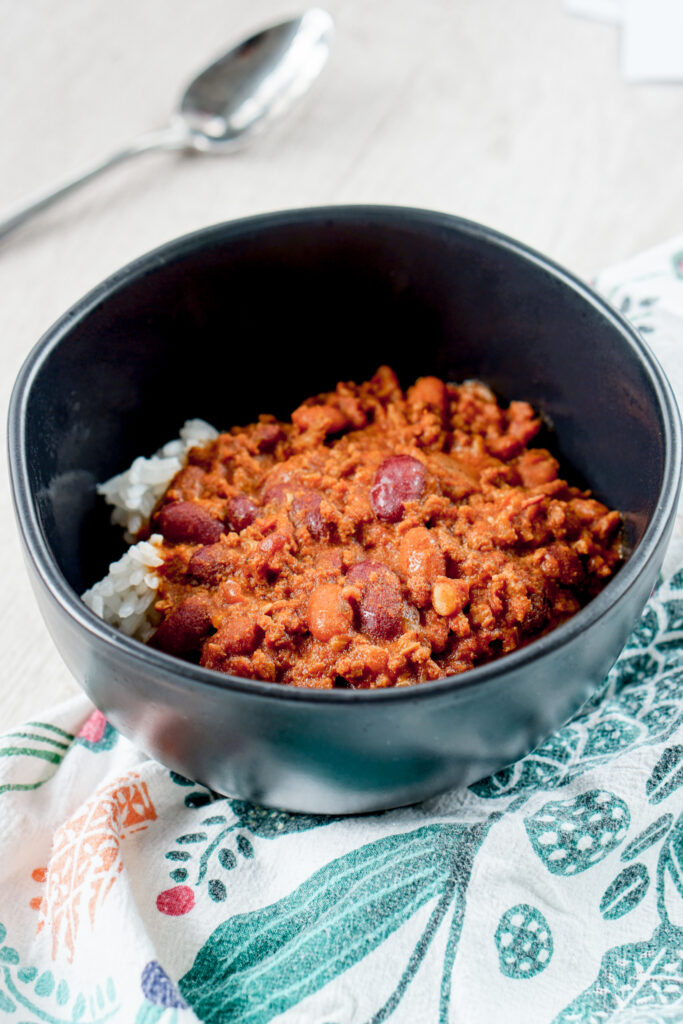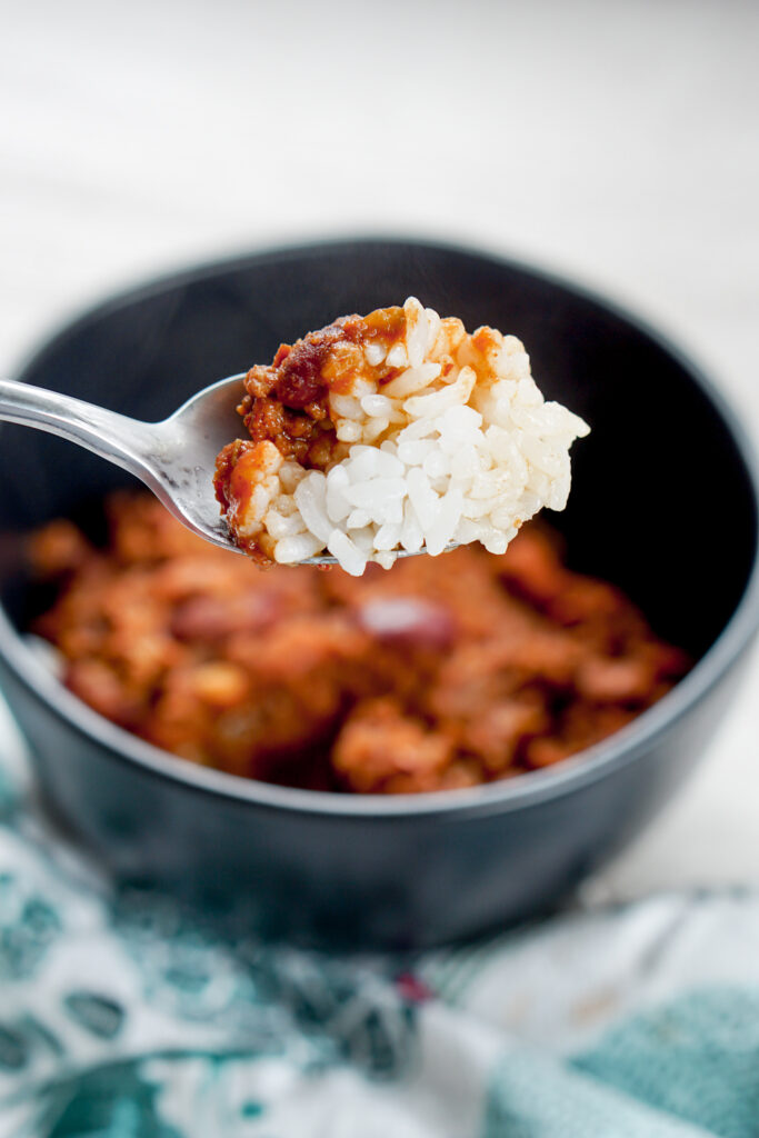 My family has always loved to eat chili over rice. It wasn’t until I moved out to college that I realized not everyone does this. Some of my friends were shocked I ate chili with rice, and I, in turn, was shocked at their shock. Later, I learned that chili rice is pretty common in Hawaii, which is probably how it made its way over into Japanese-American cuisine on the mainland as well. All this to say, if you want an authentic Asian-American/local Hawaii chili experience, serve it over white rice.