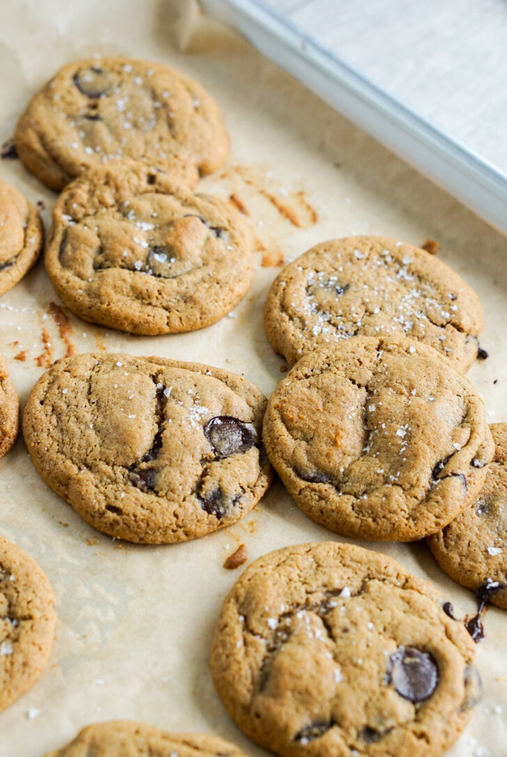 - Immediately after removing the cookies from the oven, sprinkle the flaky sea salt, if using. Leftovers can be kept in an airtight container at room temperature.