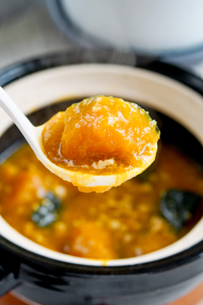 You can also eat kabocha in creamy soups, in tempura, as hot pot food, or a topping in miso soup.