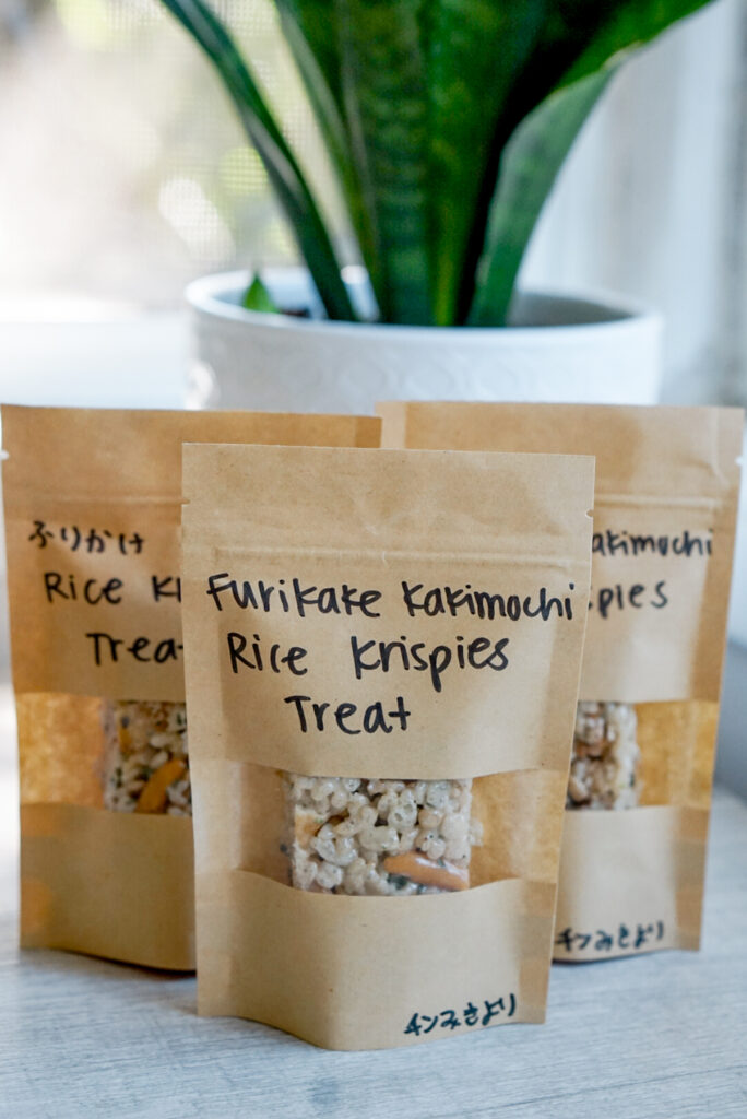 Give your classic rice krispies treats a modern Japanese American twist with furikake and optional arare crackers. This easy recipe is naturally gluten-free and comes together in about 10 minutes, not including cooling time. Disclaimer: This post may contain affiliate links.