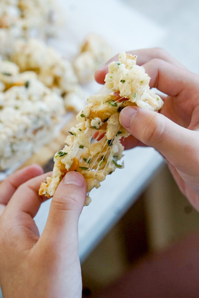 Youโll see my recipe calls for two tablespoons of sweetened condensed milk. I read in a Kitchn article once that it keeps your rice krispies treats soft for longer, and I think it really works! But itโs totally optional. You do you.