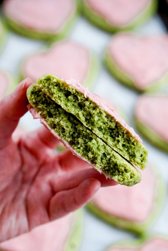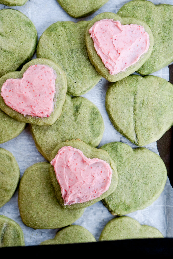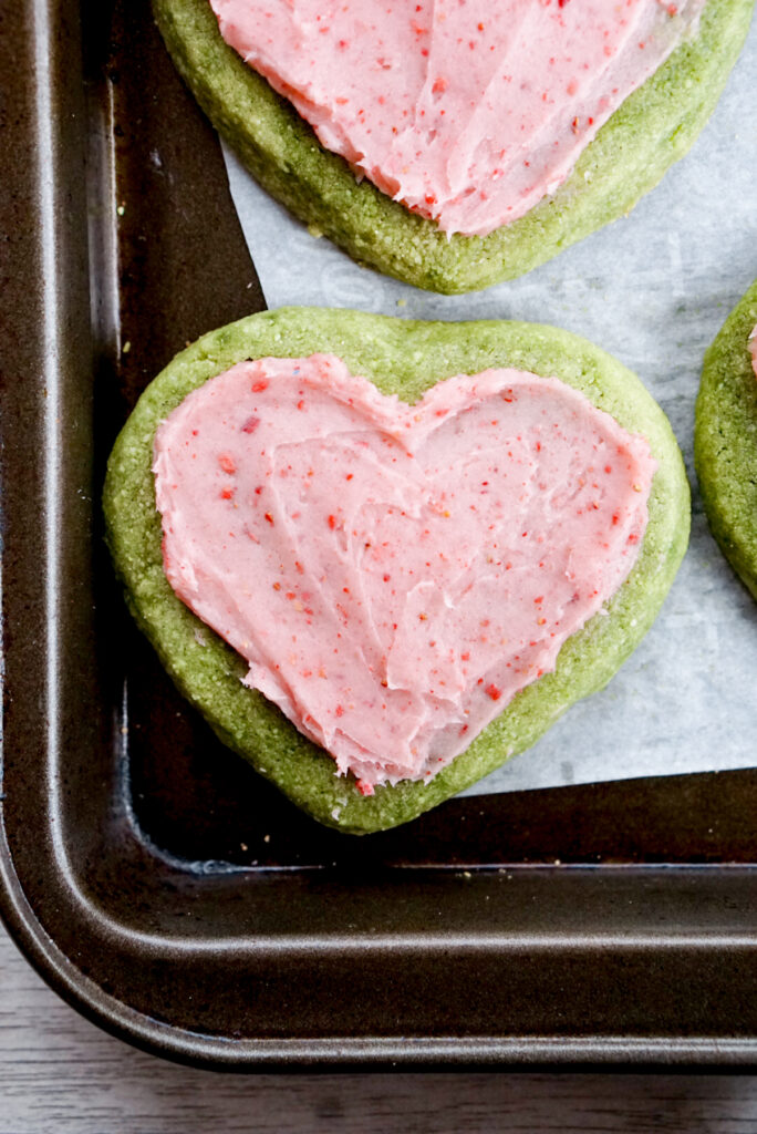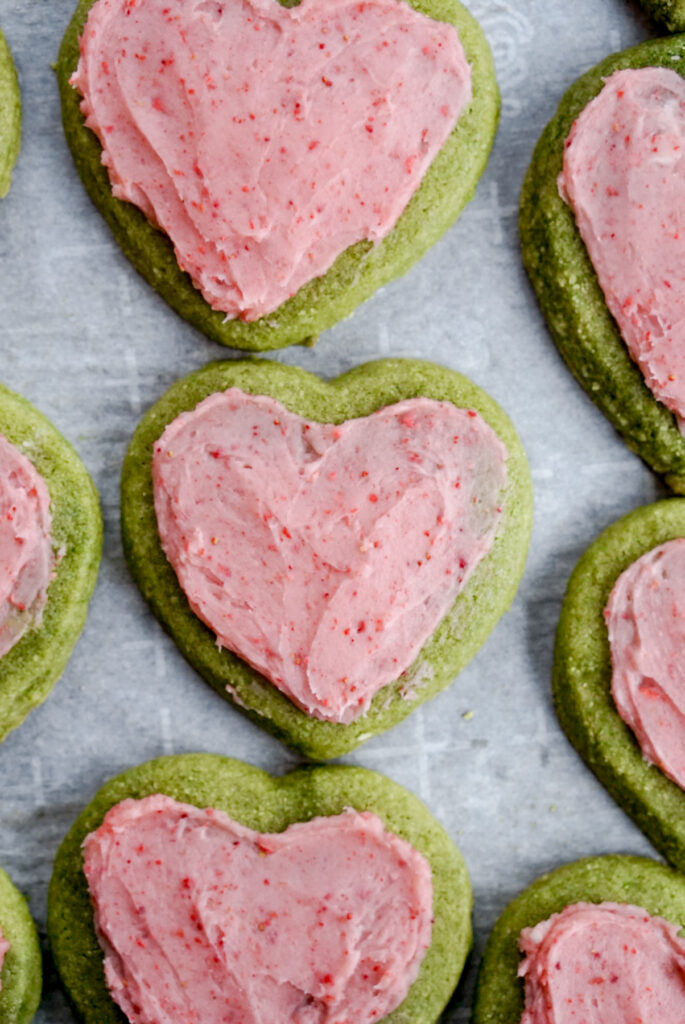 Soft Matcha Almond Cookies with Strawberry Buttercream