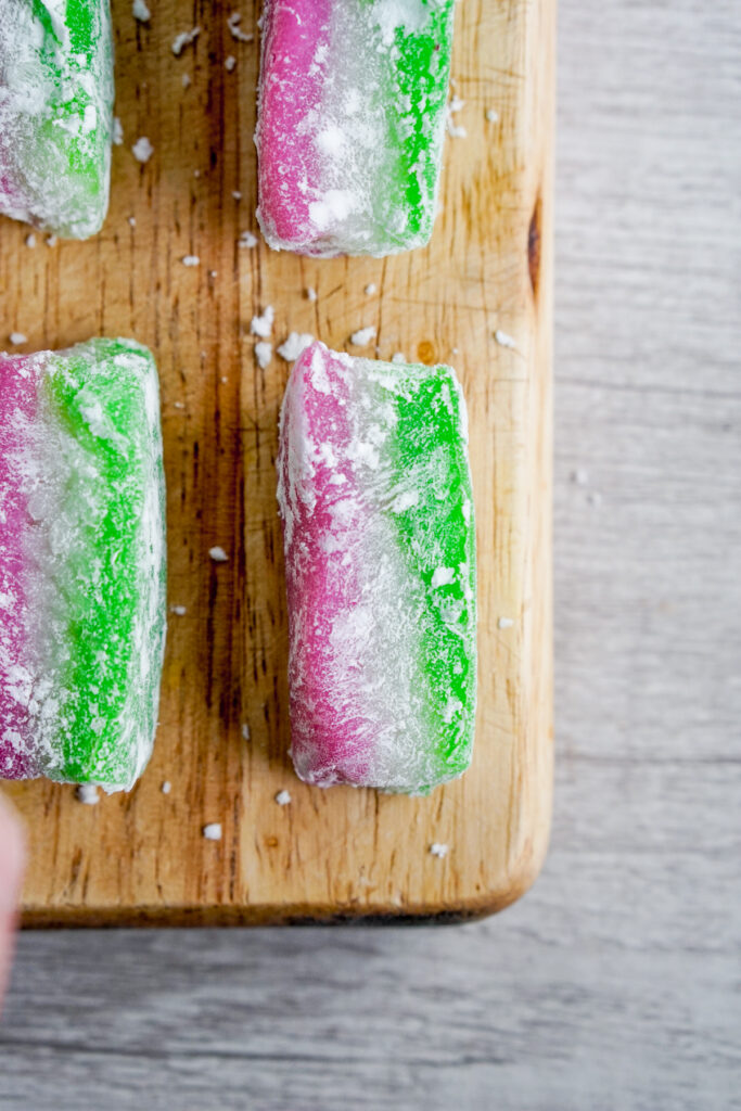 - Use a plastic knife or pizza cutter to cut your mochi
