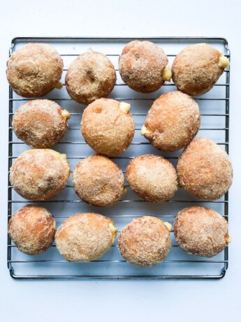 These donuts are made from a no-knead brioche dough from Bread in 5, filled with kinako pastry cream, and dusted with kinako sugar.