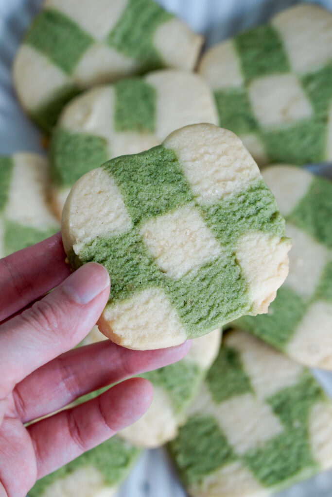 These checkerboard cookies are made with an easy sugar cookie dough base. Actually, the sugar cookie dough was based off my roll out shortbread cookie dough that I used for my Honolulu Cookie Company copycat recipe. For these matcha cookies, I wanted something a little less dense and crisp, so I tweaked it slightly to be more sugar cookie-like. However, it still will hold its shape and not spread too much, so itโs great for fun designs like checkerboard cookies.