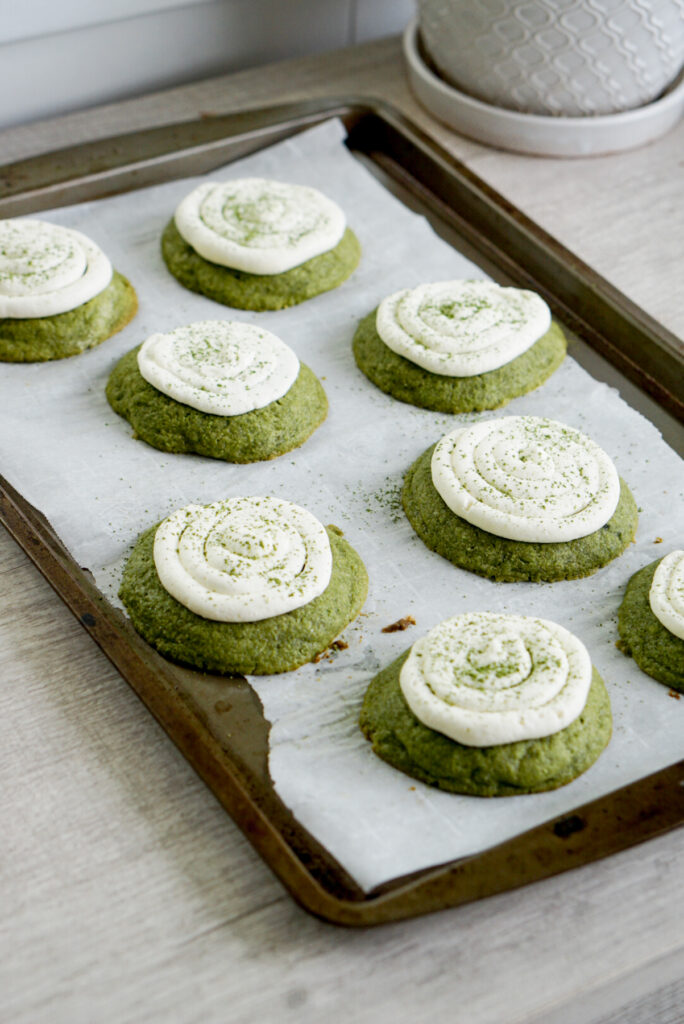 Matcha Latte Cookies with Chantilly Cream Frosting