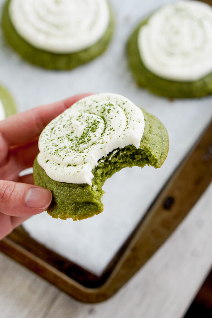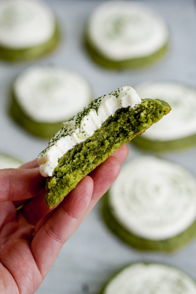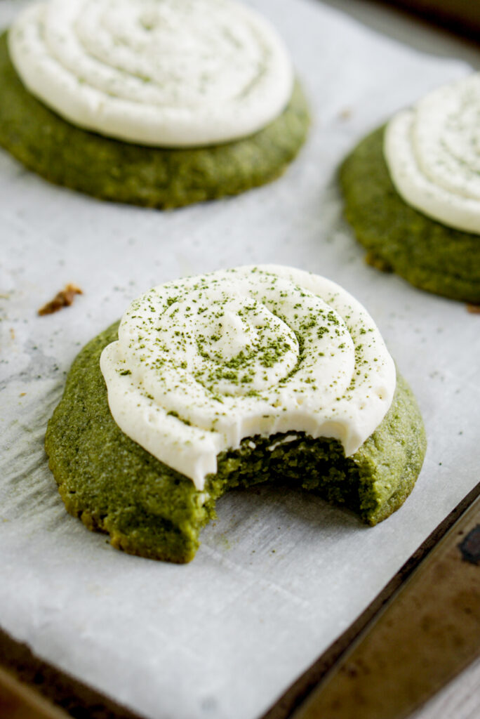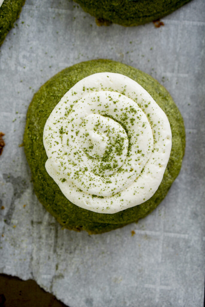 But itโs not enough. Because sometimes you want a matcha cookie recipe thatโs almost like a slice of cake, with a soft chewy texture and light whipped frosting thatโs not too sweet. And thus this recipe was born.