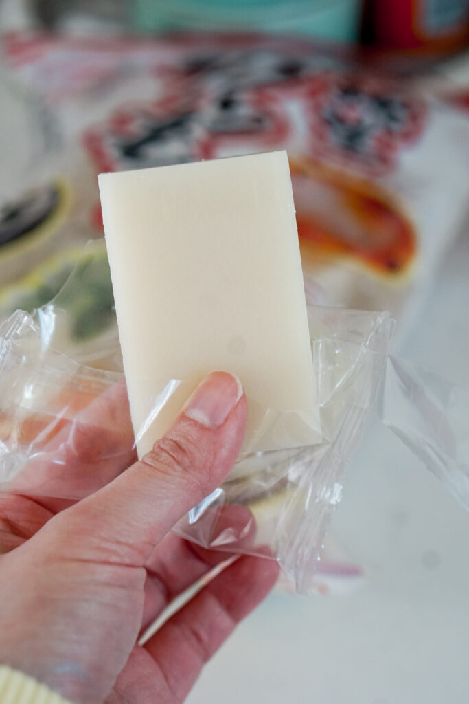 When I make yakimochi or other savory mochi dishes at home, I often use kirimochi. Kirimochi is a shelf stable mochi. It comes in a rectangle shape, packaged in plastic, and literally sits on the shelf at room temperature with an expiration date so far in the future, my great grandchildren could still eat this mochi (just kidding). But really, kirimochi is great because it comes in single serving packages and can last forever. So you will NEVER have a mochi emergency on your hands.