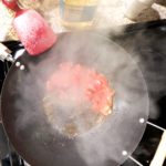In a hot wok or frying pan with oil, stir fry the tomatoes until they become soft. (Optional: you can add a little bit of sugar here if your tomatoes are very acidic)