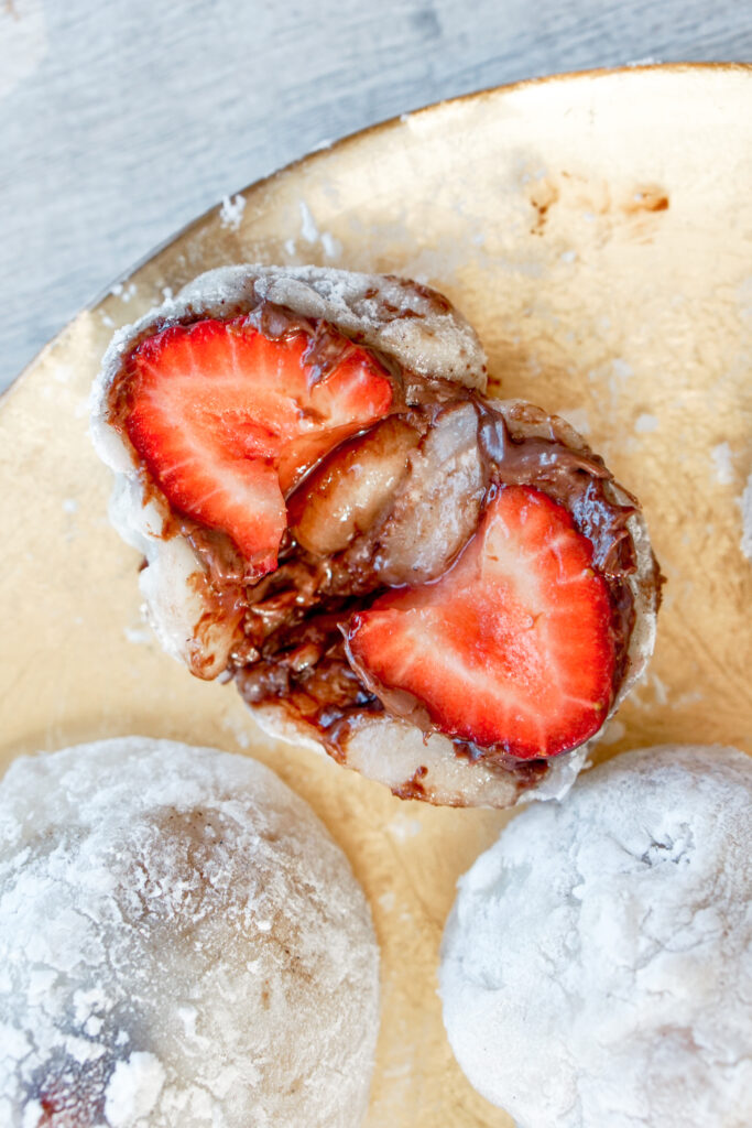So, strawberry and Nutella are pretty easy to find. Letโs talk about the ingredients for the mochi layer.