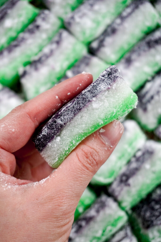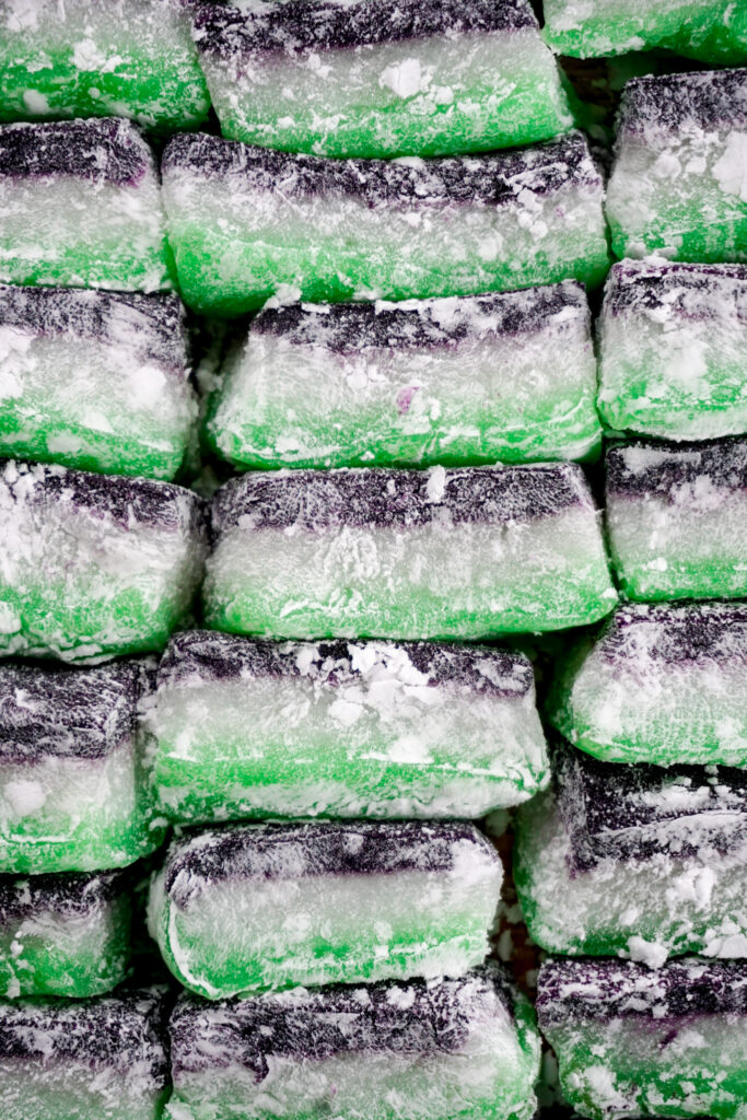 Chi chi dango is a Hawaiian mochi that often comes in multiple colored layers. I did a South East Asian twist on the flavors by using pandan and ube extracts.