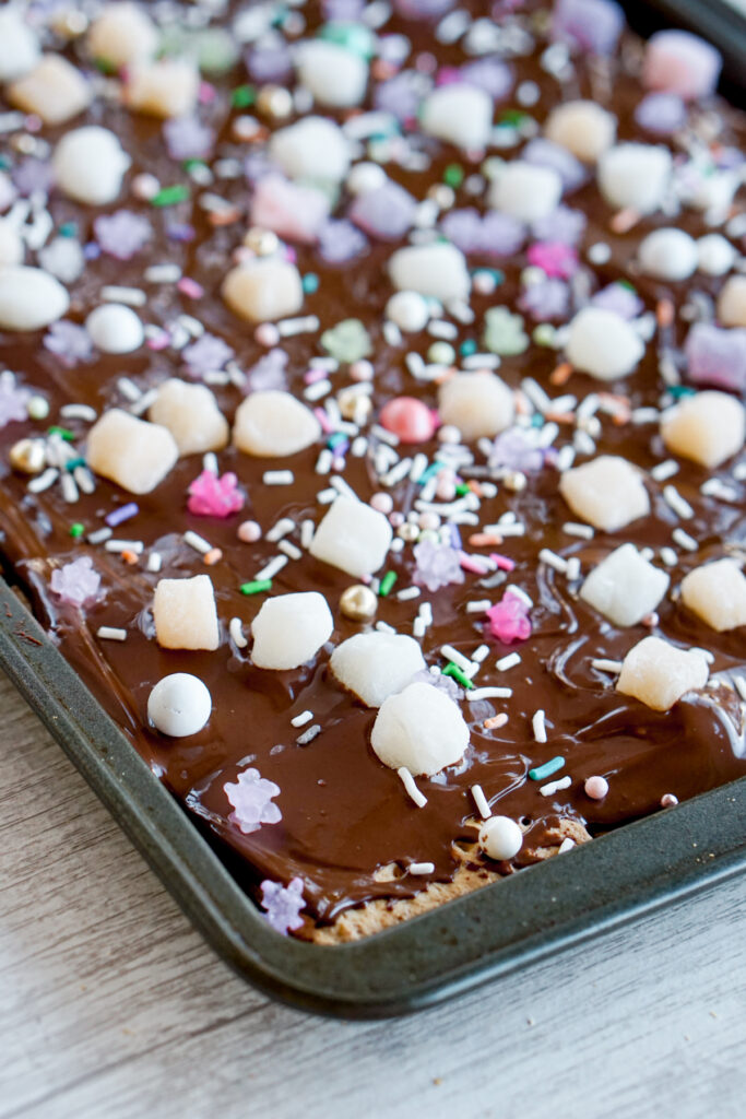 Mochi Konpeito Chocolate Bark with Graham Crackers
