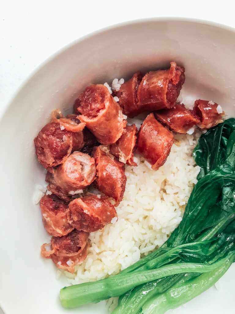 Rice cooker lap cheong, a.k.a. Chinese sausage, is the EASIEST Chinese food you could ever make. The sausage links go directly on top of your rice and water in the rice cooker pot. Press the button and wait for deliciously sweet and salty lap cheong. When I first posted some videos to Instagram of me cooking lap cheong in a rice cooker, I thought it was common knowledge. Turns out a lot of people (Asians included) didnโt know you could cook food in a rice cooker! So stash away some lap cheong in your cupboard, and come back to this blog post when youโre craving Chinese rice dishes.