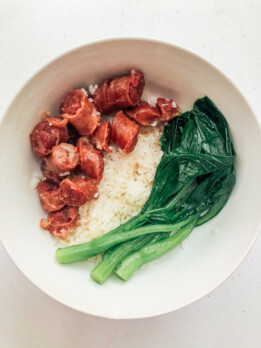 While I wait for my rice and lap cheong to cook, I usually boil up some veggies as a side. Try my 5-minute Chinese vegetables if youโre like me and canโt have a complete meal without veggies.