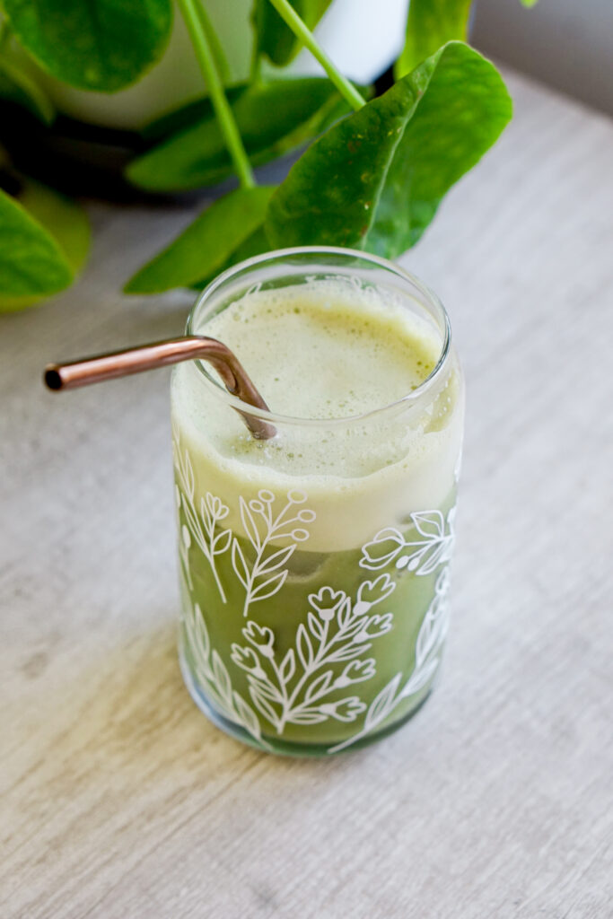 Just like coffee, matcha comes in different blends with different flavor profiles. The best matcha to use for lattes is whatever flavor matcha you like the best. I typically use a matcha with a light-medium flavor because I generally donโt like to add any sweeteners to my drinks. But you do you! This banana matcha latte is naturally sweetened by the banana, so you can take that into consideration when deciding which matcha to use.