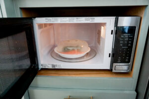 Place green beans and carrots in a microwave safe bowl with about 2 tbsp of water. Cover and microwave 3 minutes to steam. (Alternatively you can bring a pot of water to boil and blanch the veggies for 1 minute).