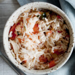 Ready for a twist on the viral salmon rice bowl? Try using pico de gallo (storebought is fine) and sesame oil for some Latin Asian flavor. This recipe is easy to use with leftovers and storebought ingredients, perfect for a weeknight!
