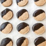 Dip each cookie halfway into the melted espresso morsels and place back on the parchment to dry.