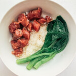 Add lap cheong on top of rice.