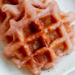 Scoop batter into waffle maker. I use about 1/3 cup batter for each small waffle square in my maker, but you may have to adjust depending on what waffle maker you use. Cook for about 5 minutes, or until waffles are just slightly crispy and brown on the outside.