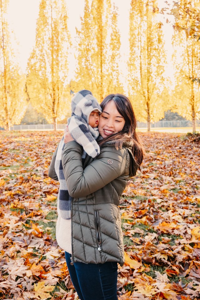 By the way, holding a baby when youโre both wrapped up in puffers is hard. Laying them down in the leaves is much easier.