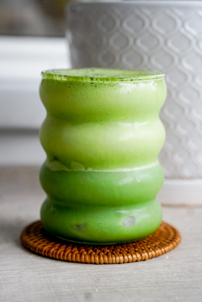 In fact, you NEED a milk frother for this recipe. Hand whisking will not achieve the same super thick foamy texture. I use the Instant Pot Magic Cup frother because itโs super easy. I dump everything in there, press a button, and wait for it to be done. I have not tried making this in a blender, but I donโt think youโll get the right texture. I have made matcha smoothies in a blender, though, and my banana matcha uses a blender, so check those out if thatโs all you have.